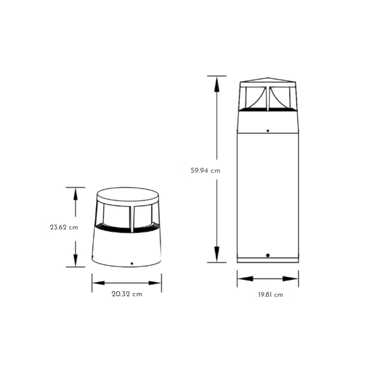 This minimalist pathway bollard light features a high-density die-cast aluminum body, finished with a sand-gray anti-UV outdoor powder coating to resist sun-induced fading and damage. It offers two flexible height options—21cm and 60cm—to adapt to different outdoor space scales and lighting needs.