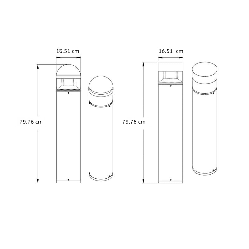 This Nordic-style bollard light stands at 31 inches (80cm) tall, featuring a high-density die-cast aluminum body with a sand-gray matte finish that embodies understated Nordic elegance. It comes in two design options to suit different aesthetic preferences: flat top and round top.
