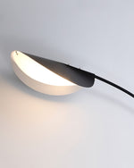 - Iron body. black finish. white acrylic shade.