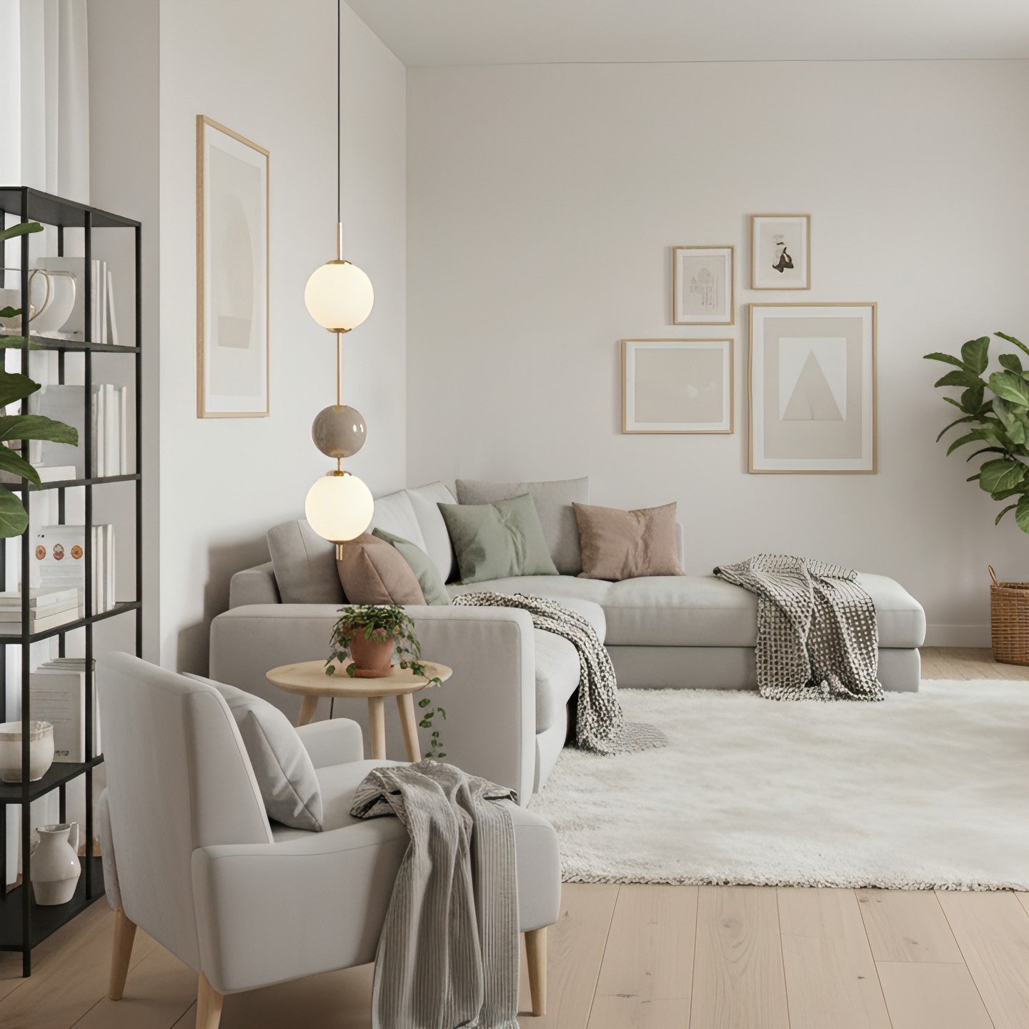 - It's featuring vibrant suspended spheres and a white globe shade that combines artistic design with functional lighting for any room.
