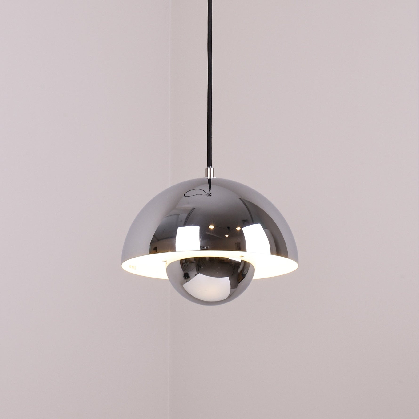- The pendant light is consists of two intersecting hemispherical lampshades. this geometric shape creates directional light to illuminate and modernize your space.