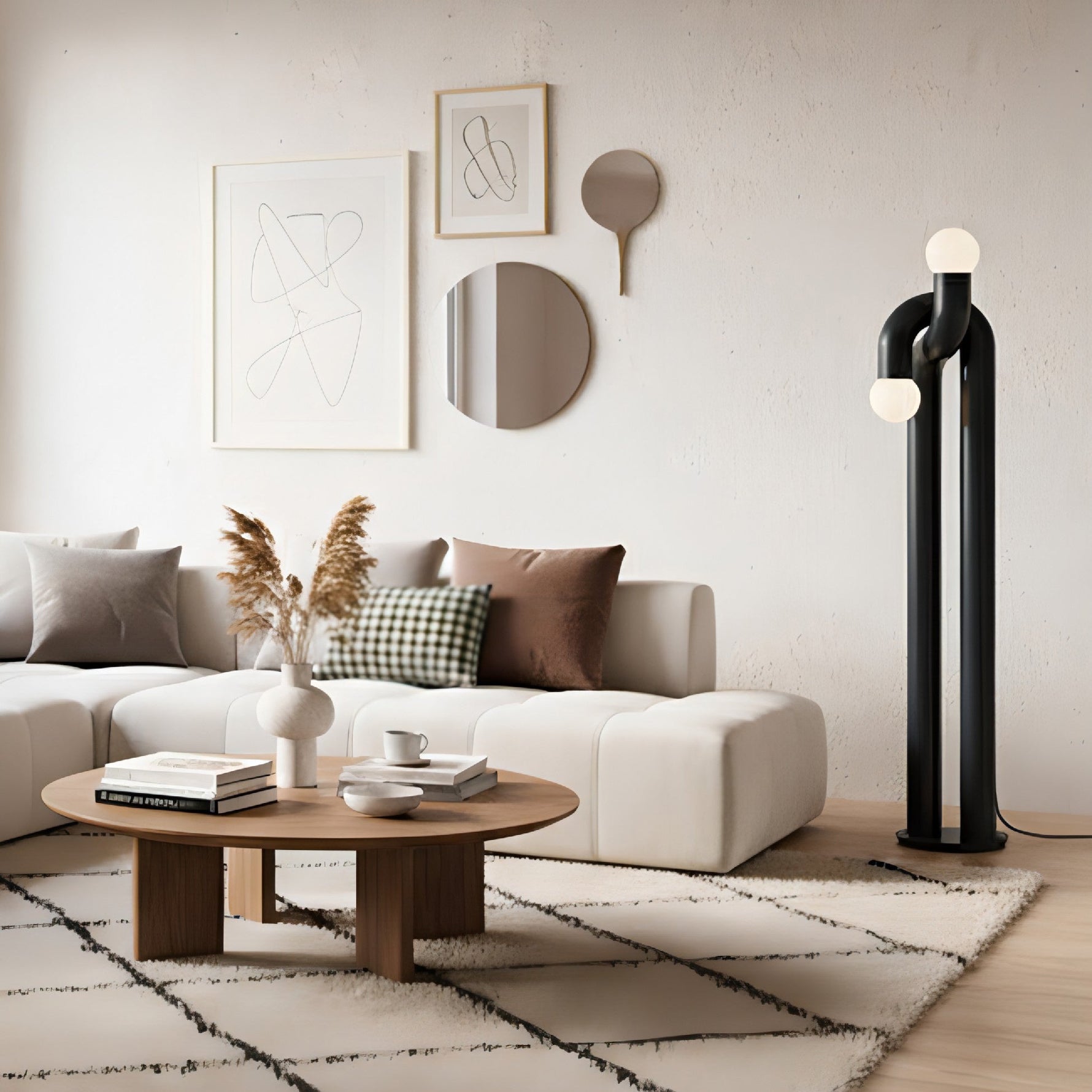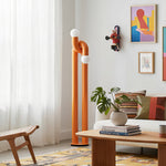 - The Loopi Floor Lamp blends rich hues with elegant curves to deliver a contemporary and sculptural aesthetic.