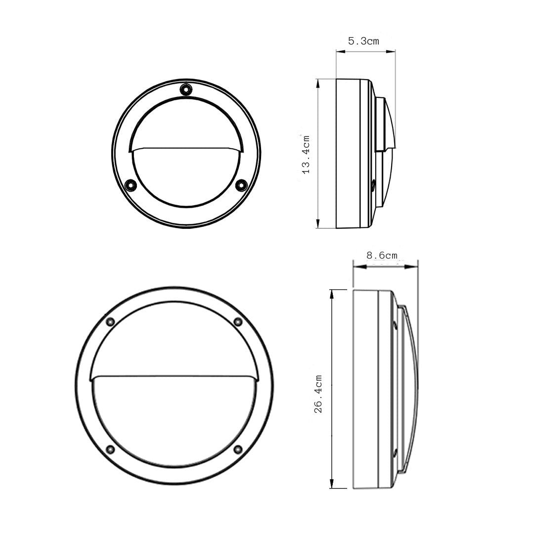 This innovatively designed semi-covered round LED outdoor wall sconce combines a die-cast aluminum alloy body with a PC lampshade, finished in flash-black UV-resistant outdoor powder coating for long-lasting durability. Its unique upper-half aluminum cover not only protects the fixture but also creates an elegant play of light and shadow, adding visual charm.