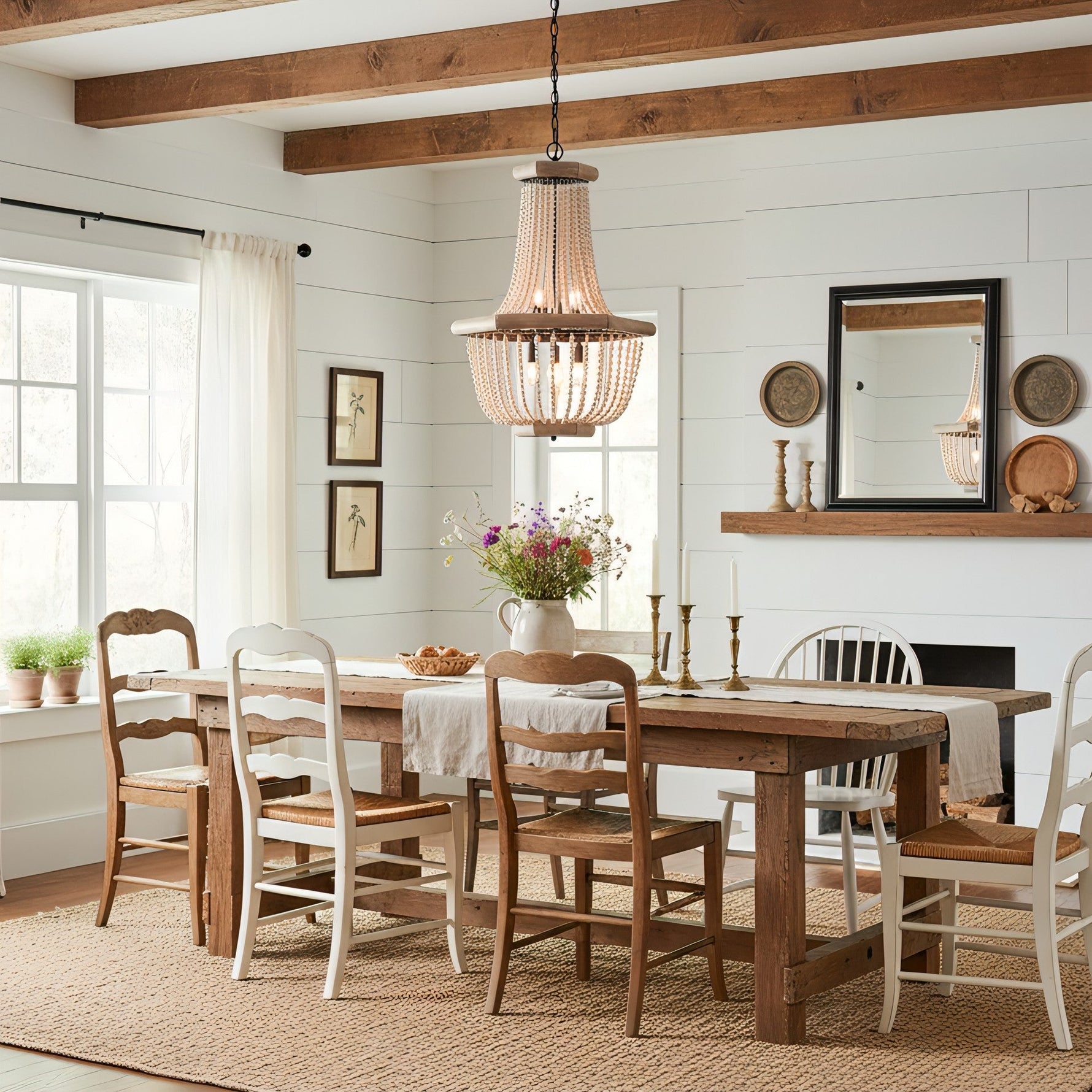 • Old white beads. wooden frame lamps.